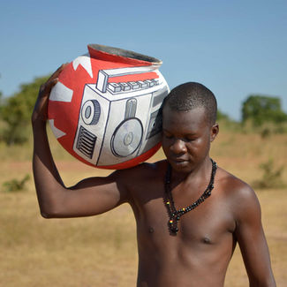 With Bruno Revert and the Cynicom Artists’ Collective, we engaged with numerous creators in Ouagadougou, entrusting them with bringing our artistic "ideas" to life. From Face-O-Scéno, which supported several installation projects, to the Lukaré Center, which crafted traditional masks inspired by modern iconography, our partnerships were diverse. We collaborated with painters Jules César and Guédor One on rural Street Art projects, seamstress Mimina Brawa to create superhero-themed boubous, sculptor Kevin Miloungou for anachronistic pottery, Napam Beogo bronze artisans for imported fetish objects, and decorator Junior for the communication plan of the fictional company Burkea.